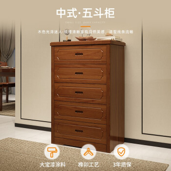 公熊家具 斗柜 客厅现代シンプル实木五斗柜卧室组装整理柜 A款胡桃色 五斗柜
